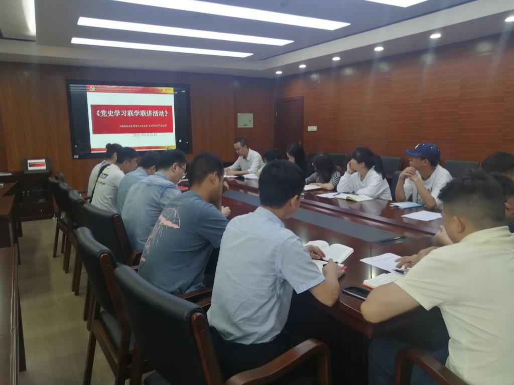 6月29日上午8点,网络与信息中心党支部、后勤处党支部、艺术学院学生党支部开展党史学习联学联讲活动,活动由杨家兴主持,全体党员参加。