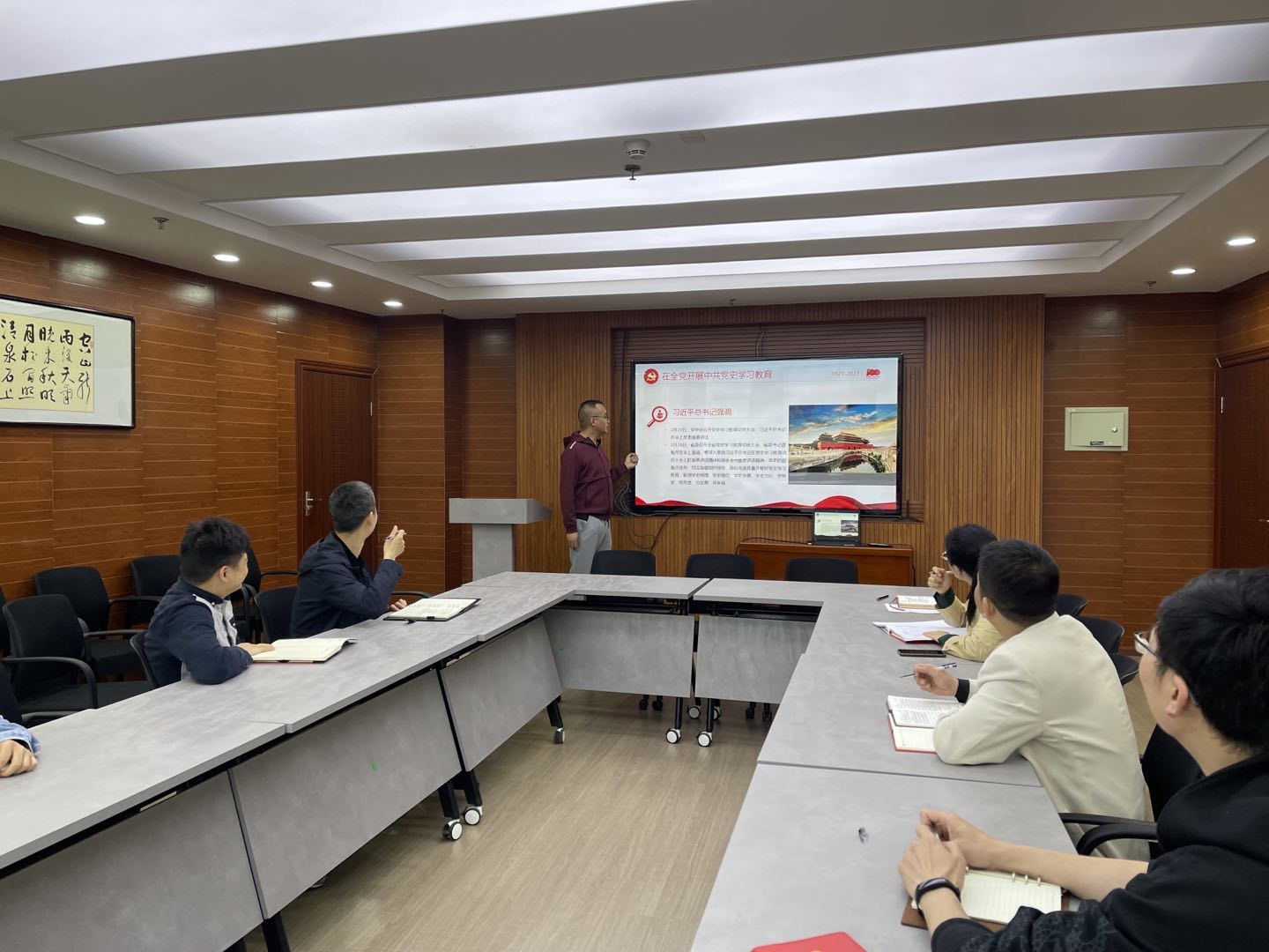 5月24日上午10点,网络与信息中心党支部在7楼会议室开开展集中党史学习教育宣讲,宣讲由支部书记杨家兴讲授,支部全体党员及部门全体教职工参加学习。