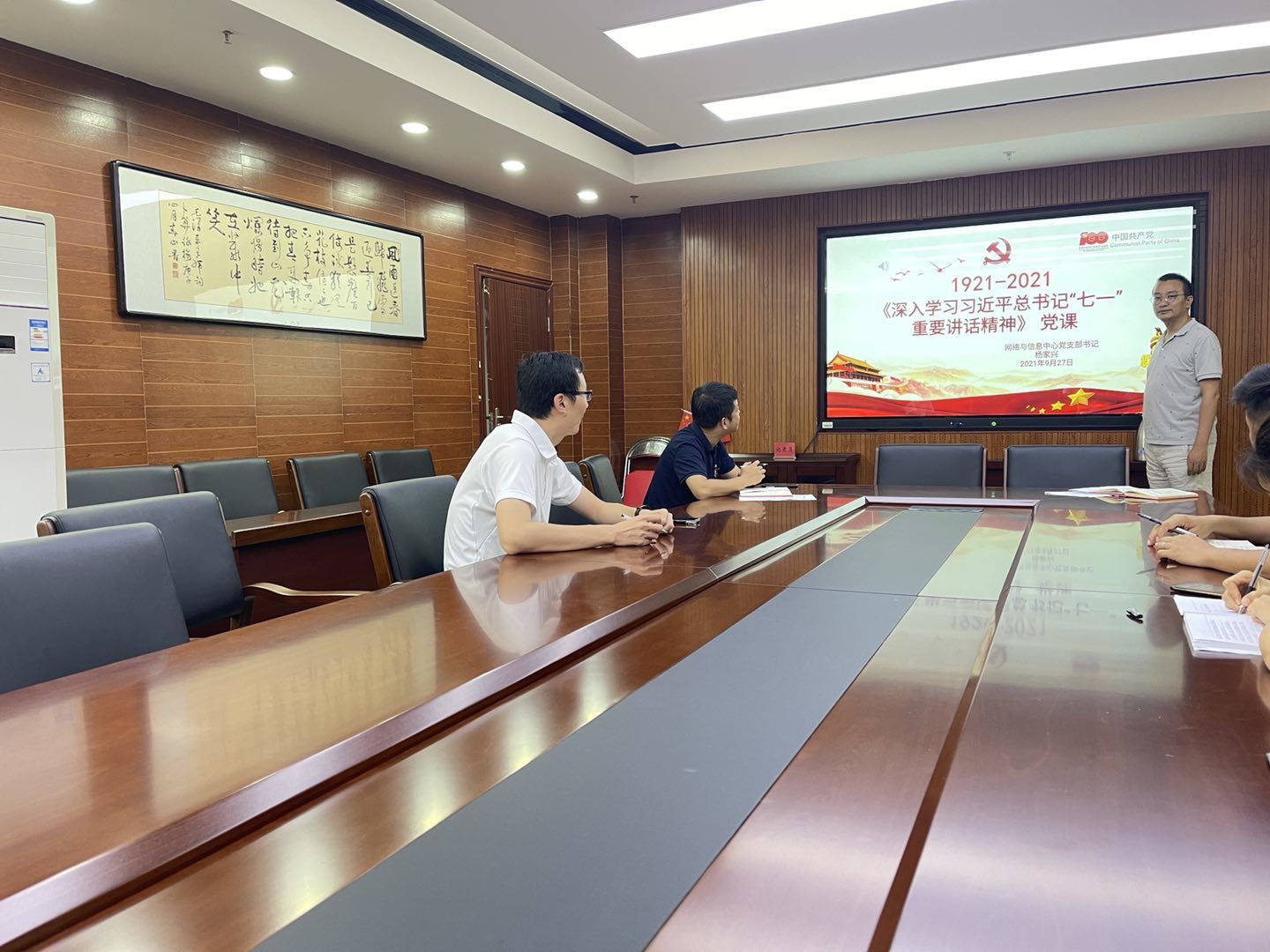 9月27日上午9点,网络信息中心支部在行政楼5楼会议室进行集体党课学习,党课的题目是《深入学习习近平总书记“七一”重要讲话精神》。此次党课由网络与信息中心党支部书记杨家兴主持并授课。