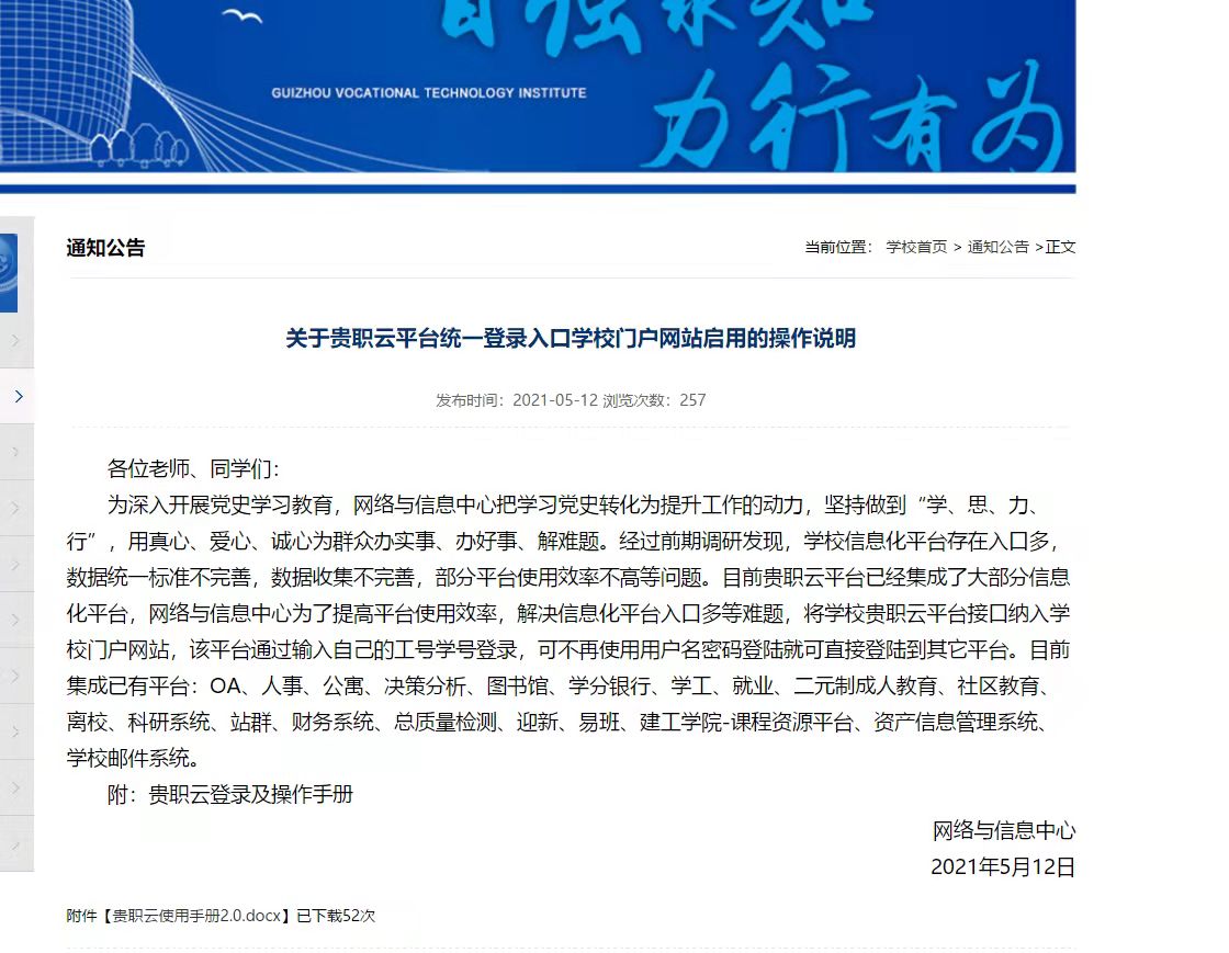 2、针对记不住各系统登录地址问题,安排专业人员在官网首页进行智慧校园平台登录链接,同时在部门网站宣传同一入口登录使用流程。